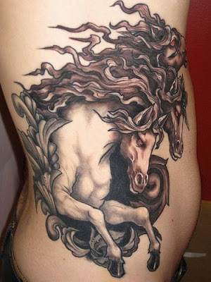 Horse tattoos are high on the list for most popular animal tattoos, and these designs range from large extensive back piece artwork to small solo head tattoos.
